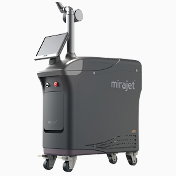 미라젯은 레이저 압력방식의 마이크로-젯(Micro-jet) 분사기술을 도입한 혁신적인 약물전달 시스템으로 레이저의 강력하고 순간적인 빛에너지를 압력으로 전환, 약물을 마이크로 젯 형태로 분사하여 진피층에 정량의 약물을 보다 효과적으로 전달합니다. 피부 진피층에서 마이크로-홀에 의한 섬유아세포 자극이 콜라겐 재생 효과와 함께 유효 약물의 상호작용으로 피부 재생(rejuvenation)이 일어나 여드름 흉터 개선, 모공 축소, 탈모 치료 등에 효과를 기대할 수 있습니다.